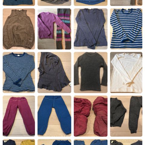 Pent brukte siklekrager fra Nøstebarn i 100% ubehandlet ull. Brukt av kun ett barn.
