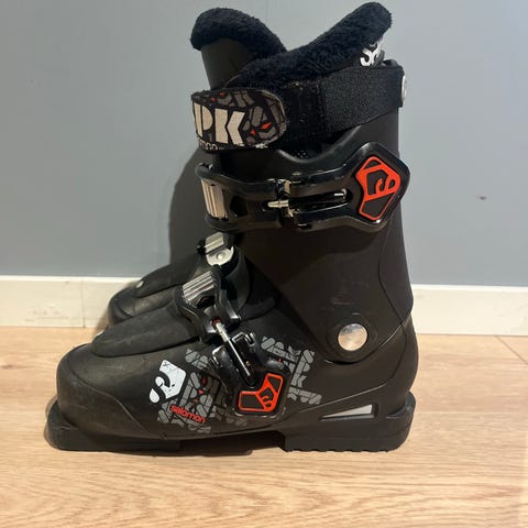 Salomon SPK 75 alpinstøvler i svart og oransje farge. Støvler med justerbare spenner og borrelås for god passform. Egnet for alpinski.