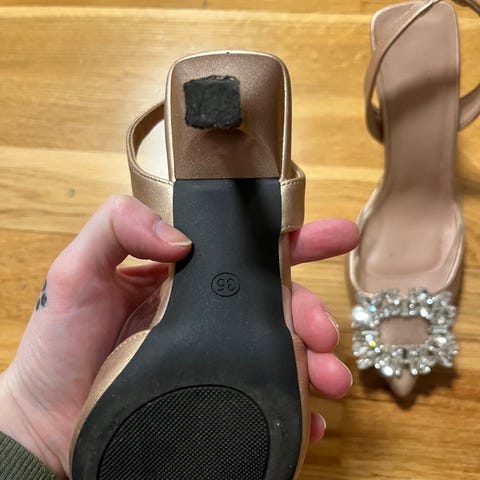 Kule brune damesko med hæl. Bruksmerker på hælene.