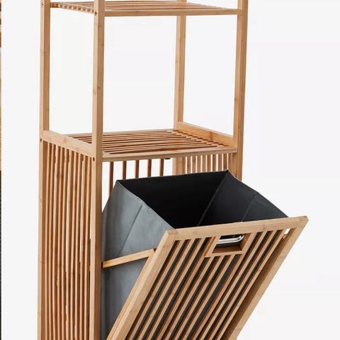Baderomsreol i tre, trolig fra IKEA. Hyllen har normal bruksslitasje, med noen mindre merker/flekker (se bilder). Ellers er hyllen i god stand.