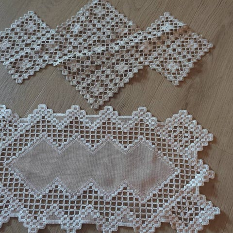 hardangersøm, hardangerbroderi, brikker, håndarbeid, dukketøy, vintage, retro