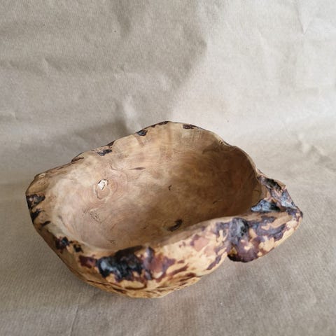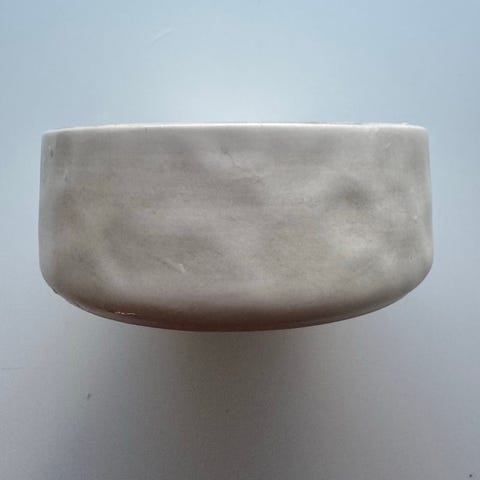 Muubs skål laget av stein med en diameter på 10 cm. Skålen har en grå farge og en rund form. Egnet for dekorative formål eller oppbevaring av små gjenstander.