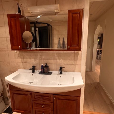 Baderomsmøbel med vask og skap i hvitt
