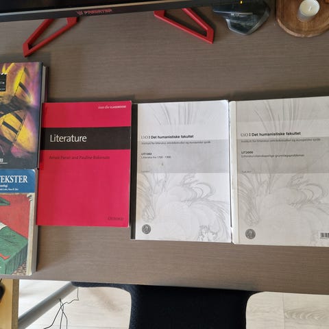 Bøkene ser helt nye ut og er så vidt brukt (unntatt norton anthology, men de har ingen synlige bruksmerker)