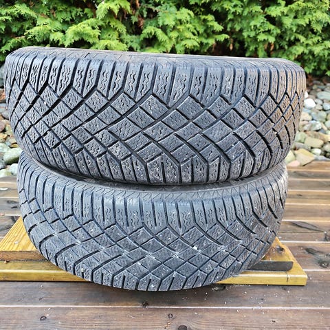 Vinter dekk 215/50R17 Conti Vikingcontact 7, 4 st. Dekkene i god stand. Mønster: 2 dekk som nye er ca 7mm, 2 dekk er ca 5-5,5 mm. Pris for 4 st! Produksjonår 2022 og 2018, se bilder.