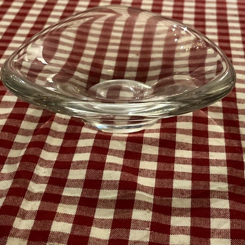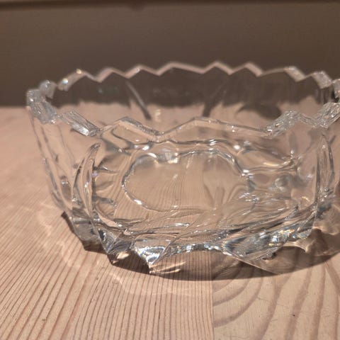Søkeord: krystall, glasskål, vintage, retro, interiør, borddekking, Hadeland-stil.