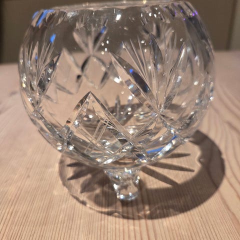 Vakker trefots krystallskål med klassisk sliping – feilfri stand