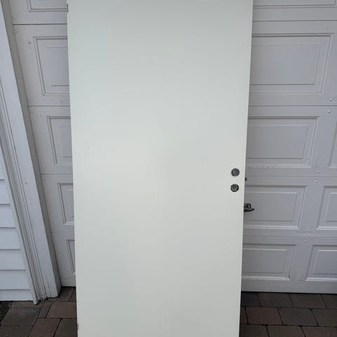 Swedoor innerdør i hvit farge. Døren har standard dimensjoner 82 x204cm, og er egnet for innvendig bruk. Den har en enkel design med låsemekanisme og hengsler inkludert.