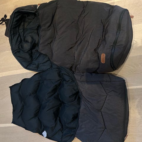 Voksi sovepose i lys grønn farge. Passer til bruk i barnevogn eller lignende for å holde barnet varmt på vinteren. Ikke røyk eller dyr