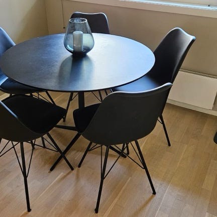 Selger denne fine spisegruppen som består av 1 bord og 4 stoler.