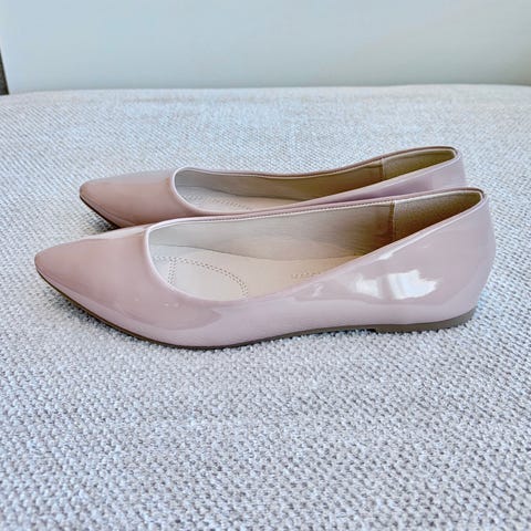 Søt ballerinasko i fin pudderrosa lakk. Brukte dem én gang som byttesko etter å ha hatt på meg høye hæler på fest 😅