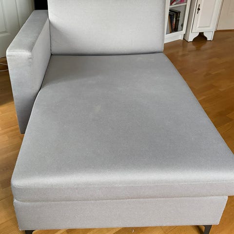 Pent brukt Slettvoll daybed i lysegrått stoff. Daybeden har et tidløst design.