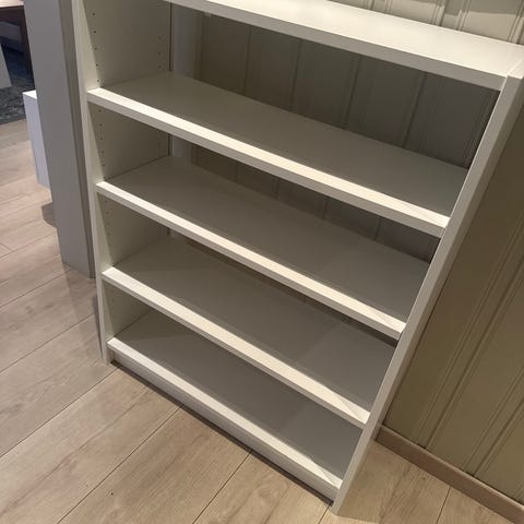 Hvit Billy bokhylle selges.