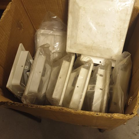 4 stk sjalusirister til ventil. Ikke åpnet. Merke Flexit. Med nippel og pakning for kanaler med 125 mm omkrets. Selges for kr 50 per stk