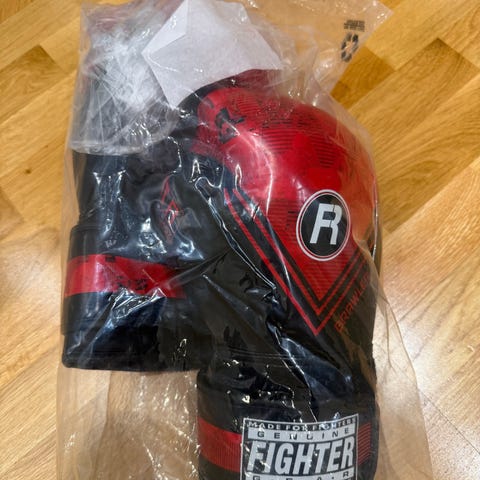 Krav Maga Institute treningssett bestående av svart T-skjorte med trykk, svart treningsbukse med elastisk midje og trykk, svart gympose med snøring og trykk, samt røde boksehansker. Settet er egnet for kampsport og trening. Beste til gutt 11-13år