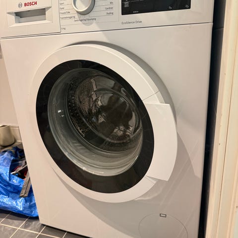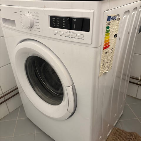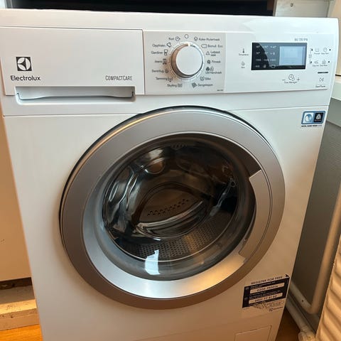 Electrolux Intuition frontmatet vaskemaskin. Modellen har et brukervennlig kontrollpanel med flere vaskeprogrammer. Vaskemaskinen er hvit og har en rund frontluke for enkel innlasting av klær. Noe rust på den som kan ses på bilde. Fungerer som den skal. Ingen problem vi opplevde med.