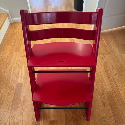 Vil si den har normal slitasje etter bruk av barn, men fortsatt mange gode år igjen.