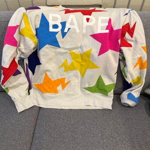 A BATHING APE T-skjorte i størrelse M, laget av bomull. T-skjorten er svart og har et trykk med merkevaren på fronten. Passer til menn.