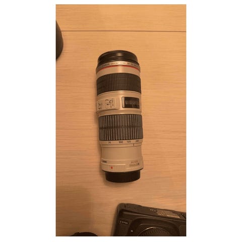 Selger et flott eksemplar av Canon EF 70-200mm L USM. Lommen til linsen følger med, samt et B+W UV filter (beskyttelsesfilter). Objektivet er oppbevart i skap av tidligere eier, og i mitt eie har det kun blitt renset med profesjonelt rensekit. Ingen riper eller skader, verken i frontelement eller bakelement.
