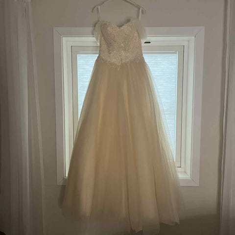 Fantastisk nydelig lyseblå ballkjole i str.38 fra Maria Magdalena. Kjolen er 2-delt. Glidelås med knapp i skjørtet og snøring i overdel. Skjørtet har et tyllskjørt som gjør det mere»fluffy».Du blir garantert lagt merke til i denne kjolen. Følger også med et sjal.Kjolen er brukt 1 gang!
