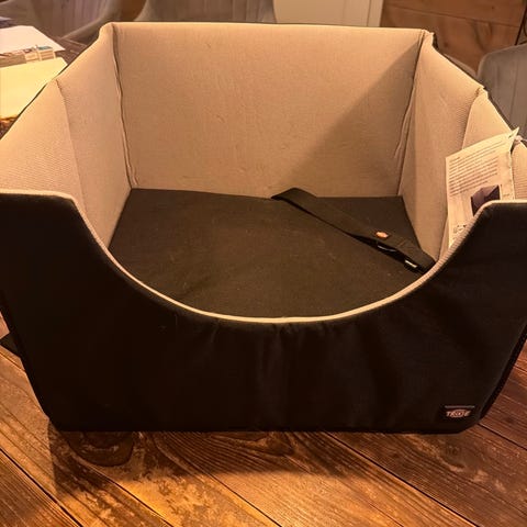 Trixie bilsete for hund i grå og svart farge. Setet har polstret innside i mykt materiale og bærestropper for enkel montering i bil. Egnet for å gi kjæledyr komfort og sikkerhet under biltransport.