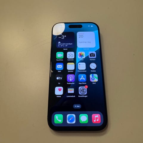 Apple iPhone 16 Pro mobiltelefon med 256 GB lagringskapasitet. Enheten har et robust design og avanserte funksjoner for daglig bruk. Batteri tilstanden står på 91%.