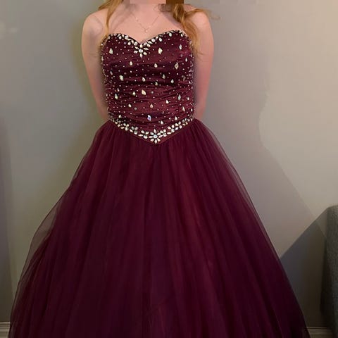 Kjøpt ny januar 2026, pent brukt. Mira ballkjole er en elegant, stroppeløs kjole i en nydelig dus rosafarge. Den har et komfortabelt korsett bak som gir god støtte og regulerbar passform, og gjør at kjolen passer fra str. XXS–S.