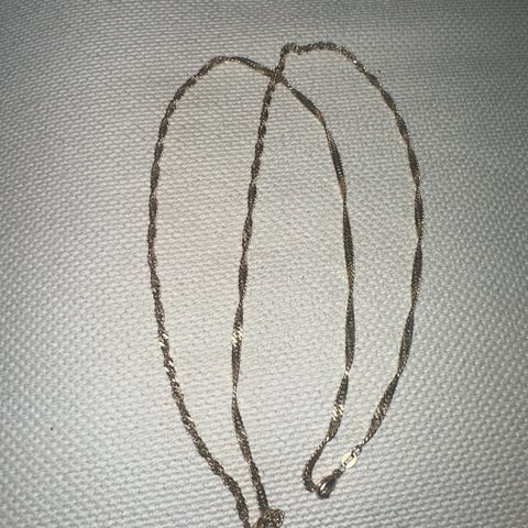 14 karat gullkjede uten anheng. 42 cm, 1mm bredt og veier 4 gram.