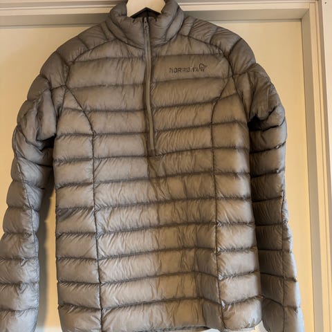 Selger en Norrøna Bitihorn Gore-Tex-jakke som knapt er brukt i størrelse S for dame. Den ble egentlig kjøpt litt for liten. Jakken er mørkere blå med lysere blå detaljer (se bildene). Den har hette som man kan snøre til og en hengehempe bak i nakken. Norrøna skriver at denne serien er slitesterk, vannavvisende og lett å pakke. Den er brukt både som regnjakke i byen og som turjakke til fjells. Lett og pustende.