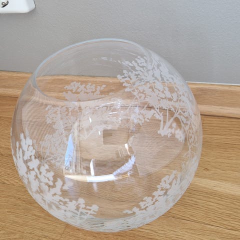 Nydelig og pent brukt vase i glass med flotte detaljer