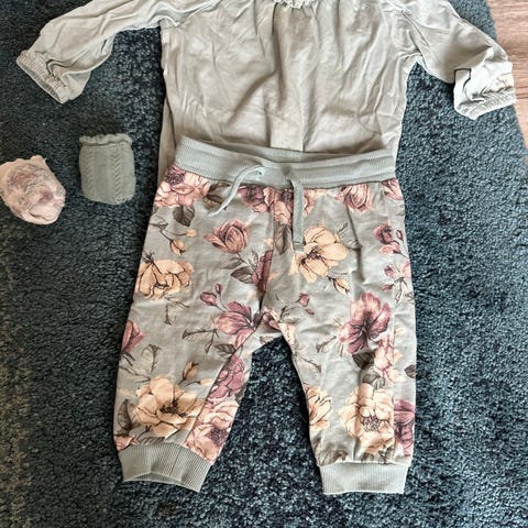 Newbie Sett til jente i størrelse 68, laget av bomull. Settet består av en overdel og en underdel i brun farge.
