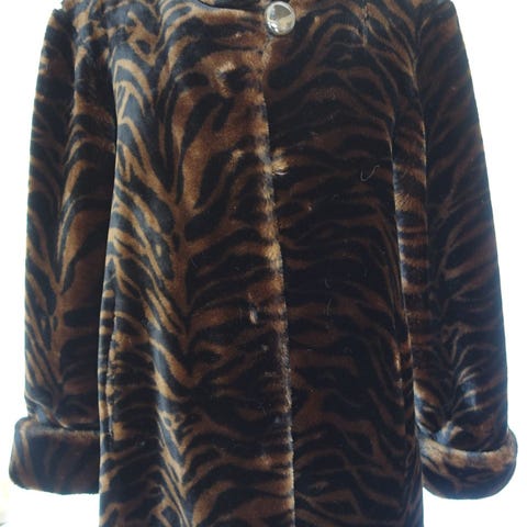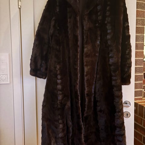 Sjekker interesser for denne superfine, lange og varme pelsjakken. Ukjent merke og opphav.