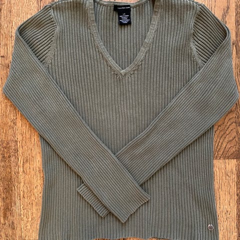 Calvin Klein Jeans genser i svart/grå farge, størrelse L for kvinner. Laget av bomullsmateriale. Genseren har rund hals og langt erme, med merkevarelogo på forsiden.