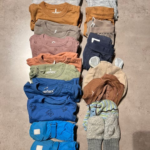 Stor klespakke i str 86. Enkelte plagg i andre størrelser men passer 86 og har vært brukt samtidig.