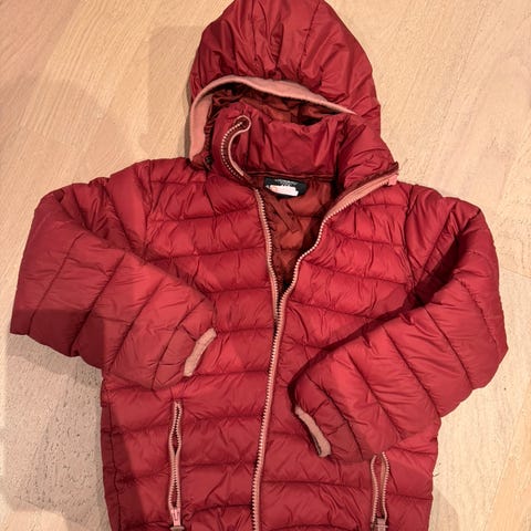 Jotunheimen dunjakke for barn i størrelse 140, farge orange. Jakken er fylt med dun og er designet for unisex bruk. Den har hette og glidelås foran, samt elastiske mansjetter for bedre passform og isolasjon.