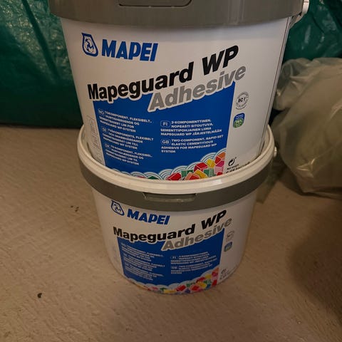 Mapei Mapelastic membran i 5 kg spann. Produktet brukes som vanntett membran i våtrom og andre områder som krever fuktsikring. 500 kr pr spann dette er meget billig