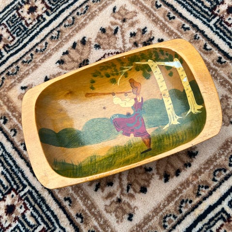 Lengde ca 13 cm og 8 cm høy. Med graveringer: Royal Pewter, propan biopolymer as, 1991.