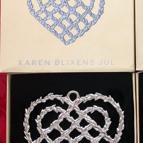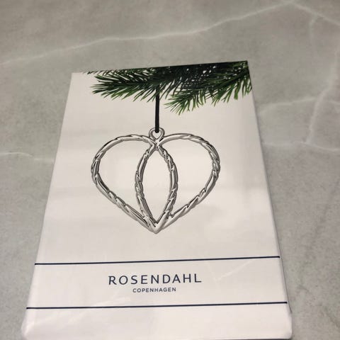 Karen Blixen julehjerte sølv, Rosendahl Jul dekorasjonsanheng hjerte sølvfarget