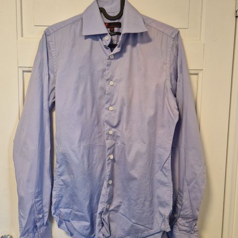 Selger en lyseblå dresskjorte til herre fra Seidensticker i størrelse S / 39, passform X-Slim. 100% bomull.