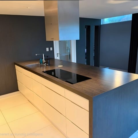 Selve strai møbelet er i god stand. Benkeplate er i hvit typ corian isj med en del småriper som nok kan poleres bort.