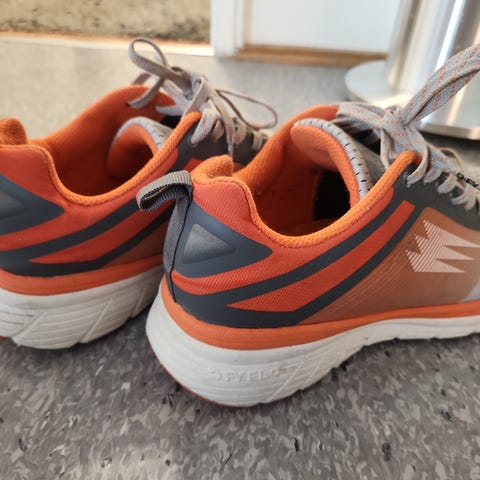 Salming Spike løpesko i størrelse 44, fargene grå og svart. Skoene er kjøpt på Oslo sportslager. Grepet er upåklagelig på is. Solide såler fra vibram.