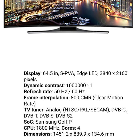 Samsung 65, smart skjermstørrelse. Produktet har HDMI-inngang og svart utførelse. Passer for bruk i hjem eller kontor for visning av TV-programmer og multimedia.
