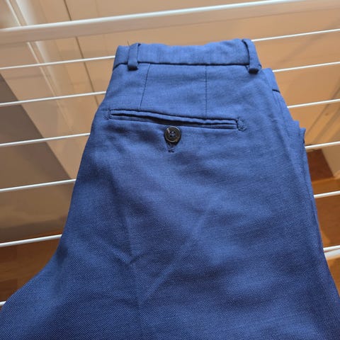 Selger to pent dressbukser til gutt. Den ene er i størrelse 42 (ca. 158 i vanlige størrelser) og den andre i størrelse 38 (ca. 146). De har en fin fasong og er helt nye. Pris per stk.