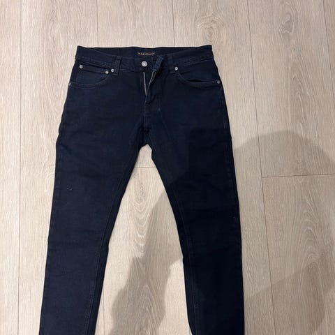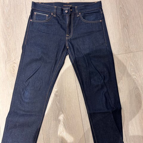 Nudie Jeans Lean Dean jeans i blå farge, størrelse W32 og M. Laget av 99% bomull og 1% elastan. Jeansene har en smal passform og er laget for menn.
