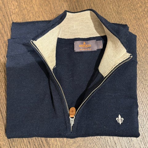 Nesten ubrukt merino Knit polo fra svenske Morris i en fin brunfarge.