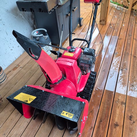 Honda HS760 2007 mod snøfres med beltedrift og frontmontert lys. Maskinen har en robust konstruksjon med hydrostatdrift og kontrollspaker for enkel bruk. Egnet for effektiv snørydding på private gårdsplasser.