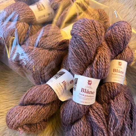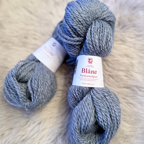 Blåne pelsullgarn er et 2-trådet, mykt og glansfullt kardegarn. Ca. 114m pr. 100g, Nm 2,3/2, 100% norsk ull.