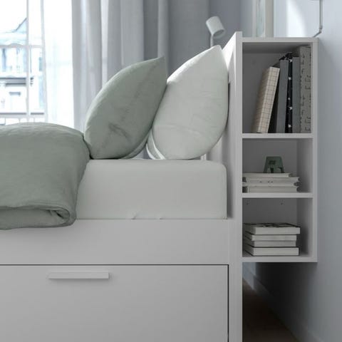 SMÅSTAD-sengen er en del av IKEAs barne- og ungdomsserie, laget for å utnytte plassen best mulig i mindre rom. Passer spesielt godt i små rom hvor man vil kombinere seng, oppbevaring og arbeidsplass i én løsning. Pent brukt selges demontert. Madrass medfølger ikke og stang inne i garderobeskap mangler.
