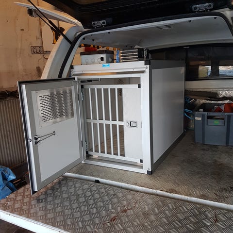 2021 mod hundekasse selges. Passer Amarok 2011-2022. Den har 3 hunderom og teknisk rom med plass til 2 våpen. Kassen har solcelle med eget batteri, i tillegg et 80 amp batteri på lasteplan for drift av 220v og eventuelt vifte og lys i kasse ved behov. Det er med styring av lading fra bil til batteri. Trerister i bunn på bur. Ytterdører i hunderom kan settes på lufting når en er parkert. Kan være behjelpelig med montering over på ny bil.