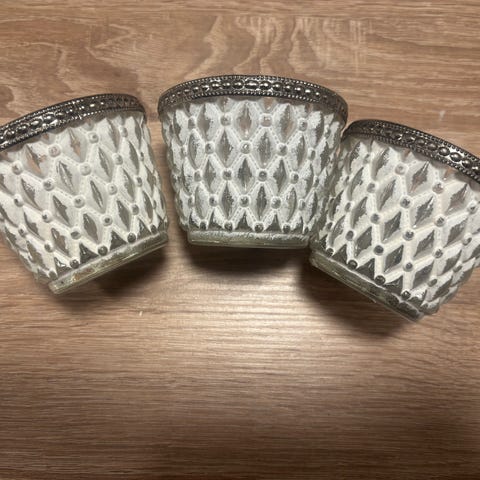 Vase, skål med lokk på stativ og flere telysestaker selges samlet
